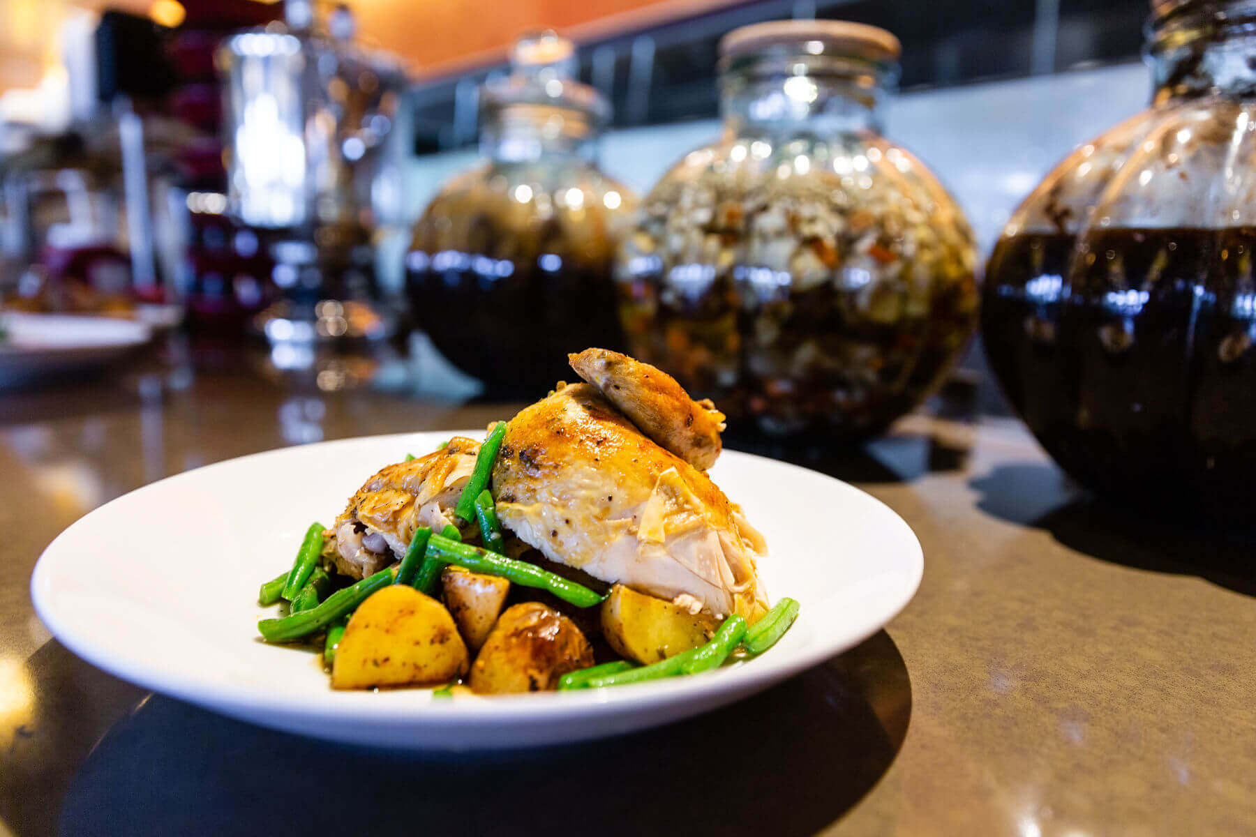 Modern drinks, sharp bartenders, and live music create a dynamic atmosphere in our full bar, adding to the style and sophistication of the restaurant. Every dish is prepared in an open kitchen, allowing guests to enjoy the high energy and sizzling excitement that make FAZ Restaurants & Catering and MacArthur Park the standout destinations they are today.